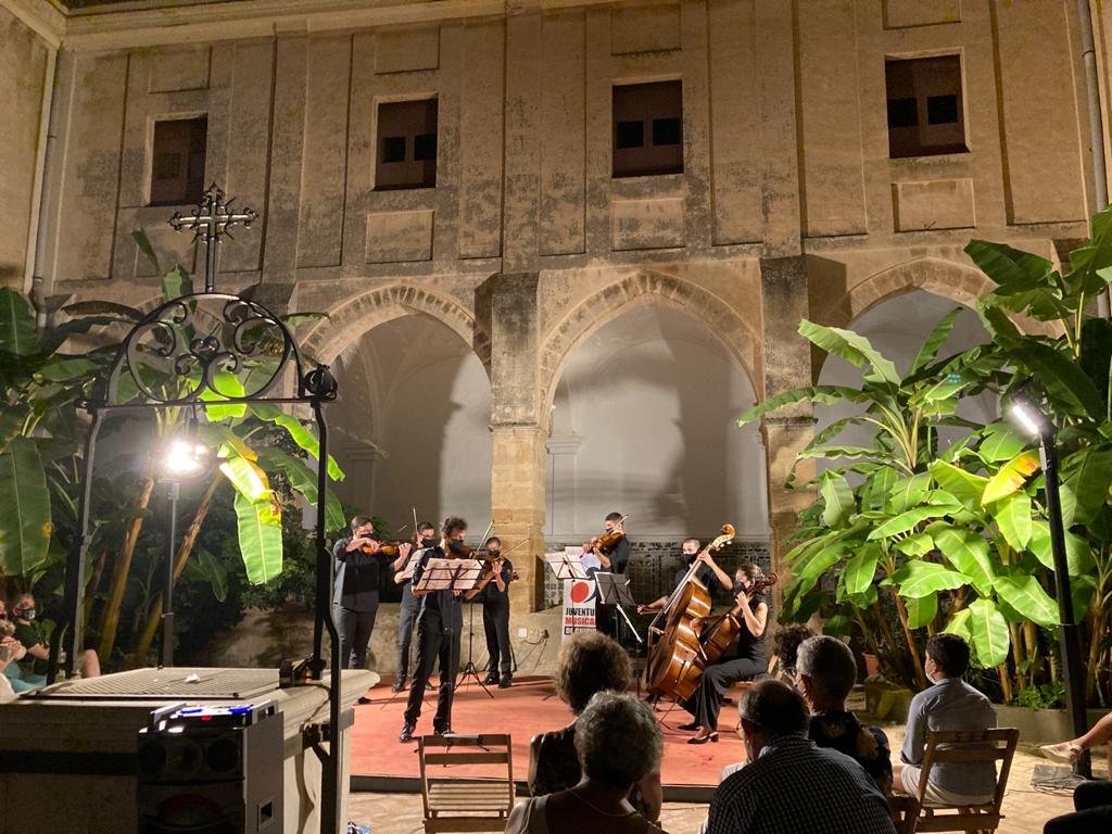 JJMM de Chipiona celebra todos los veranos el Festival de Música “Ciudad de Chipiona”, este año cumple la XIV edición. Un programa extenso y variado que se desarrolla tanto en el salón principal del señero Hotel al Sur de Chipiona como en el recoleto Claustro del Santuario de Nuestra Señora de Regla. El pasado domingo 15 de agosto tuvo lugar el concierto de la Camerata 1910, Vivaldi, Mozart, Boccherini y Turina fue el programa exquisito para las cuerdas de esta formación de cámara. La oración del torero del sevillano Joaquín Turina cerró el concierto, una música íntima y espiritual que ahonda en ese trance vital que el matador revive y ceremonia antes del comienzo de su inminente faena y que alcanza una expresividad magistral hasta plasmar musicalmente la ferviente oración.